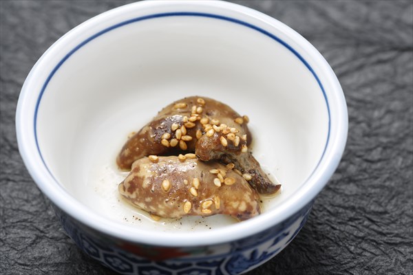 肝のごま油あえ | うなぎ処 山美世 - 秘伝のタレと濃縮された鰻の味 -