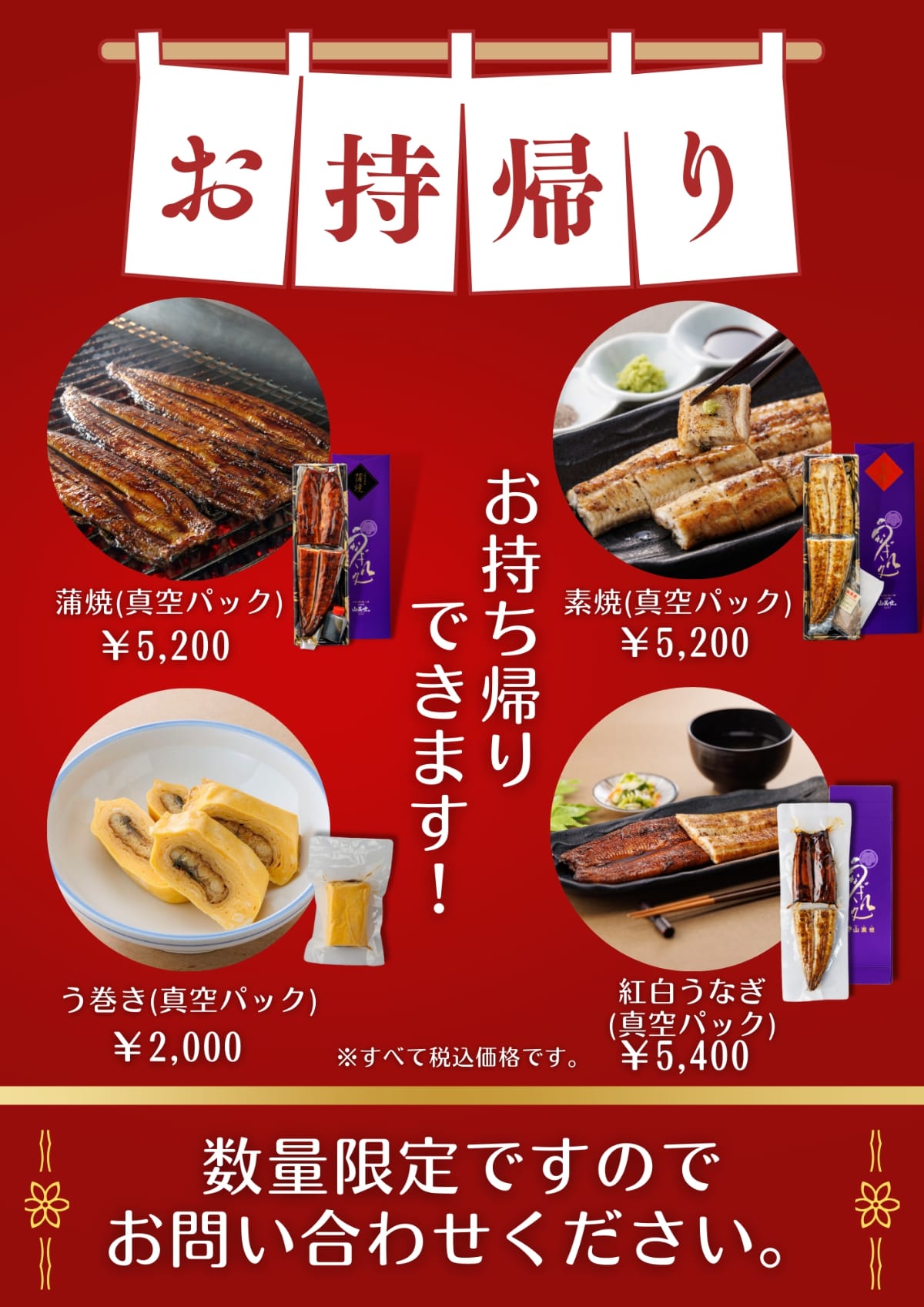 お持ち帰りPOP(催事) | うなぎ処 山美世 - 秘伝のタレと濃縮された鰻の味 -