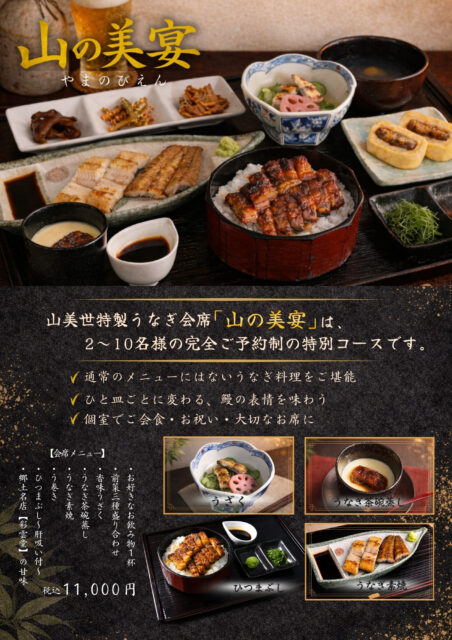 通常のメニューにはない「ひつまぶし」や「うざく」「うなぎ茶碗蒸し」などがご堪能いただける特別コースです。