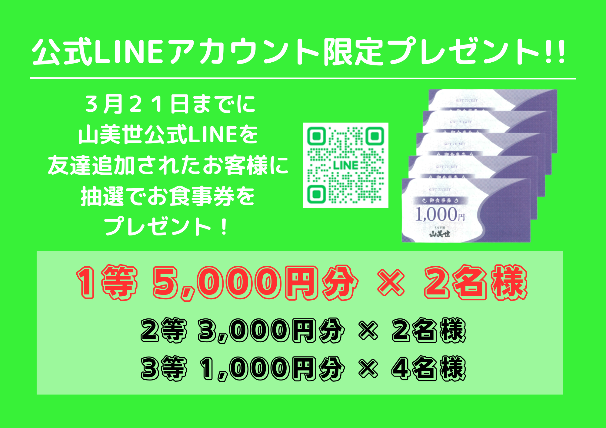 公式LINEお食事券プレゼントA3 | うなぎ処 山美世 - 秘伝のタレと濃縮された鰻の味 -